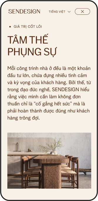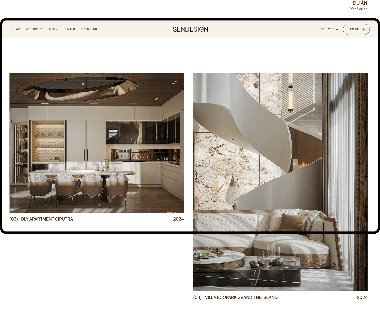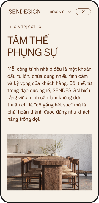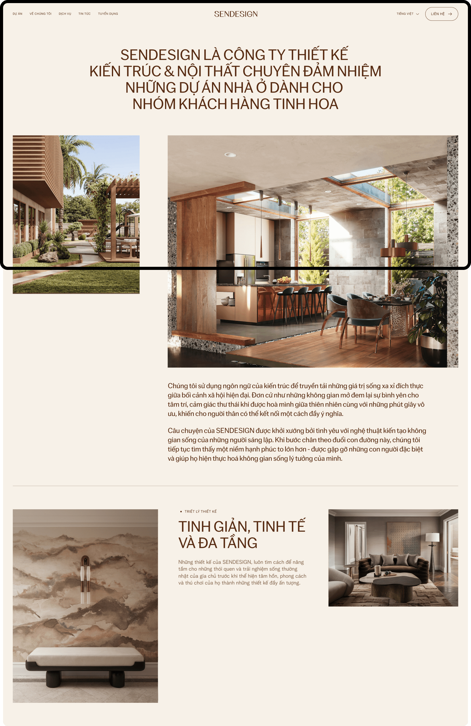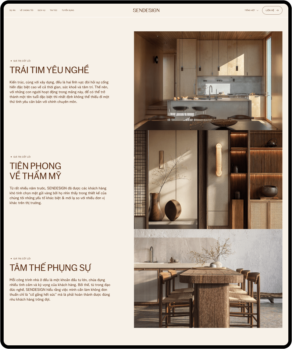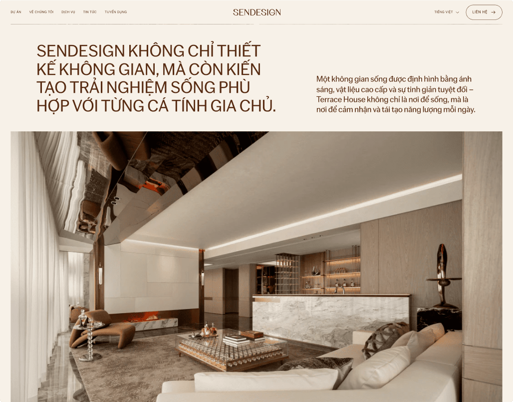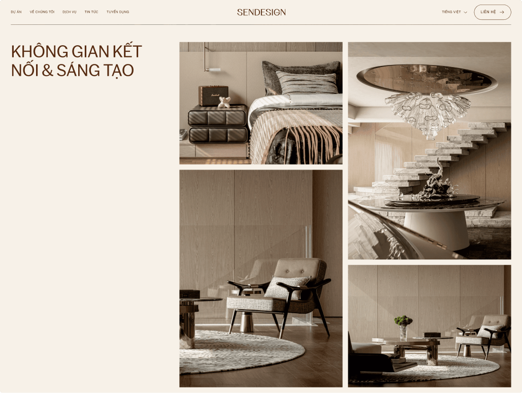 Beau Agency tự hào giới thiệu website SENDESIGN – một giải pháp số hóa hoàn hảo cho thương hiệu kiến trúc và nội thất cao cấp. Chúng tôi đã kiến tạo một trải nghiệm được thiết kế tỉ mỉ, nơi mỗi chi tiết đều kể câu chuyện về sự sang trọng, tinh tế, giúp SEN Design kết nối sâu sắc với những khách hàng tìm kiếm giá trị vượt thời gian.