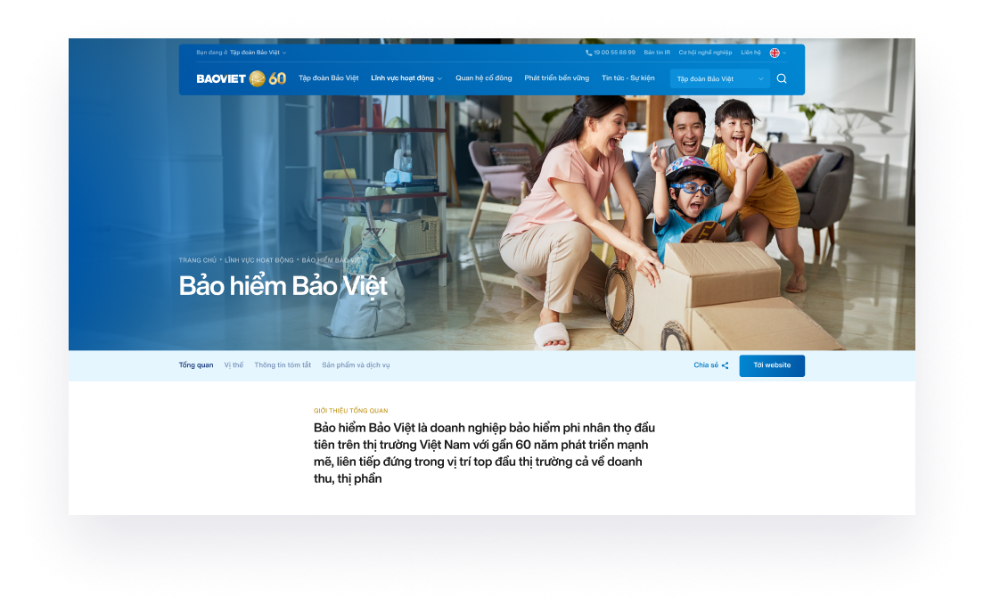 Trang Home của website tập đoàn Bảo Việt được thiết kế thuần để đáp ứng những nhu cầu về điều hướng của người dùng.